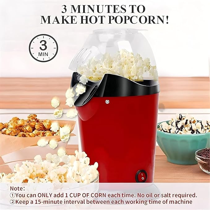 - Oil-Free, Healthy Snacking for the Whole Family – Enjoy fresh, crunchy popcorn made with just hot air! No oil or butter needed, making it a healthier alternative to fried snacks. Ideal for kids, adults, and anyone looking for a guilt-free treat.