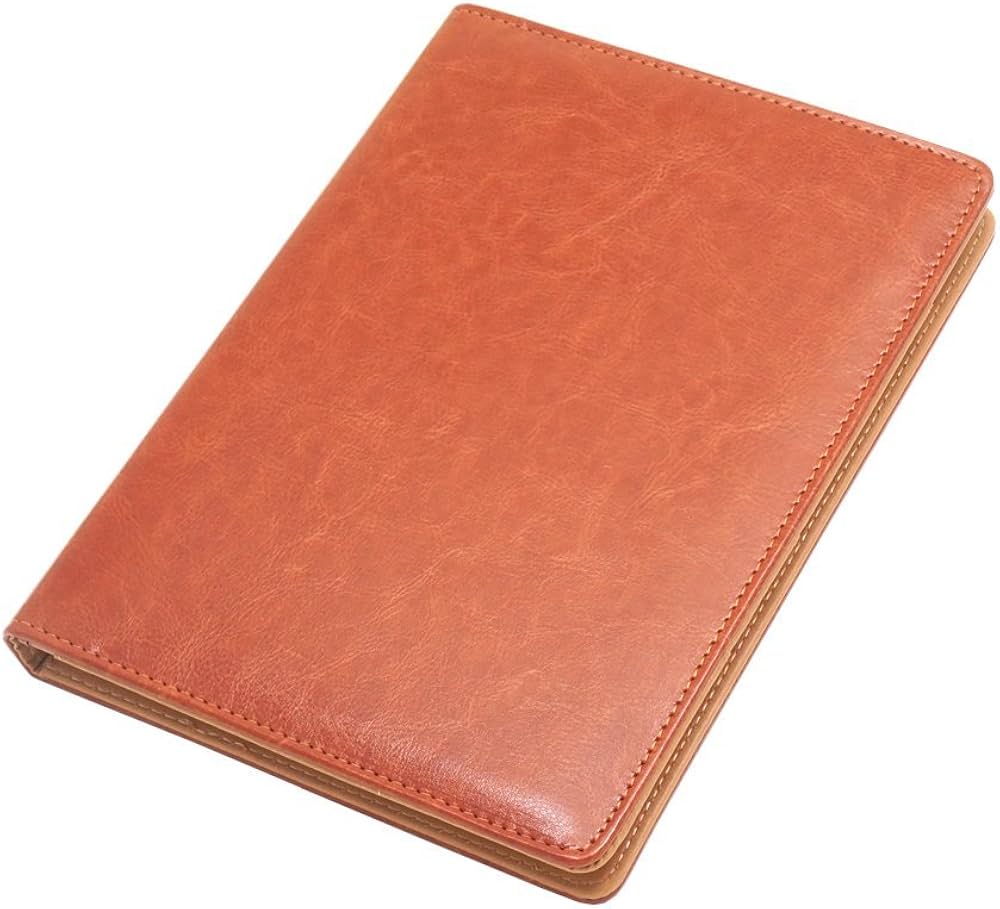 The exterior features high-quality stitching along the edges. This detail significantly enhances durability. Furthermore, it provides a refined, tailored appearance for any professional environment. The tan “cognac” hue is a popular choice for office stationery. It projects warmth and approachability. At the same time, it maintains a sophisticated, high-end feel. Its A5 size makes it highly portable. Therefore, it fits easily into briefcases or bags for meetings.
