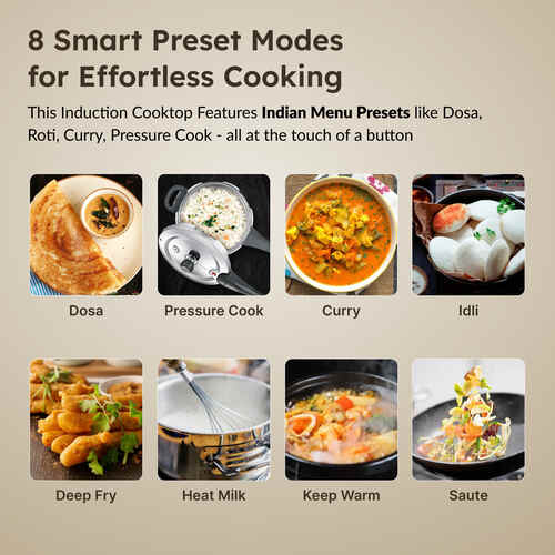 - Preset Indian Menu Options: Cook popular Indian dishes with a single touch for consistent and authentic results.