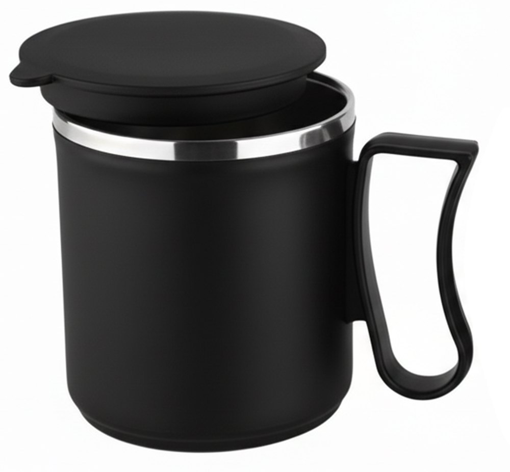 A matte-finished plastic shell encases the steel body, providing a layer of protection and a sophisticated look. This exterior prevents the heat from the inner steel from transferring directly to your hands. Therefore, you can carry hot beverages comfortably without the need for an external sleeve. The oversized, contoured handle ensures a natural and secure grip. Additionally, the wide, flat base provides excellent stability on standard office desks and conference tables.